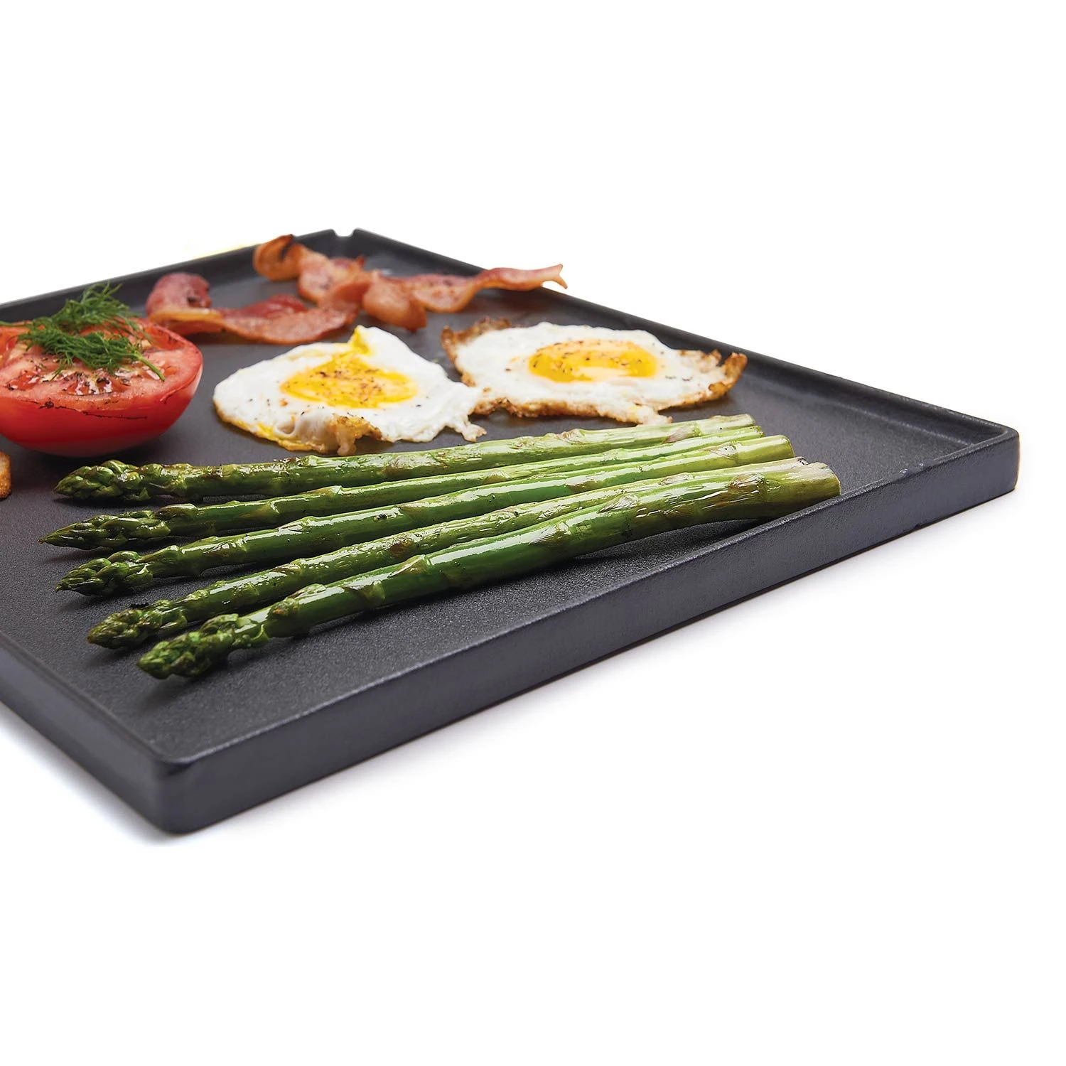 - Premium Construction – Reversible, heavy duty cast iron griddle with matte porcelain coating has one smooth side for frying, while the other side is ribbed for searing