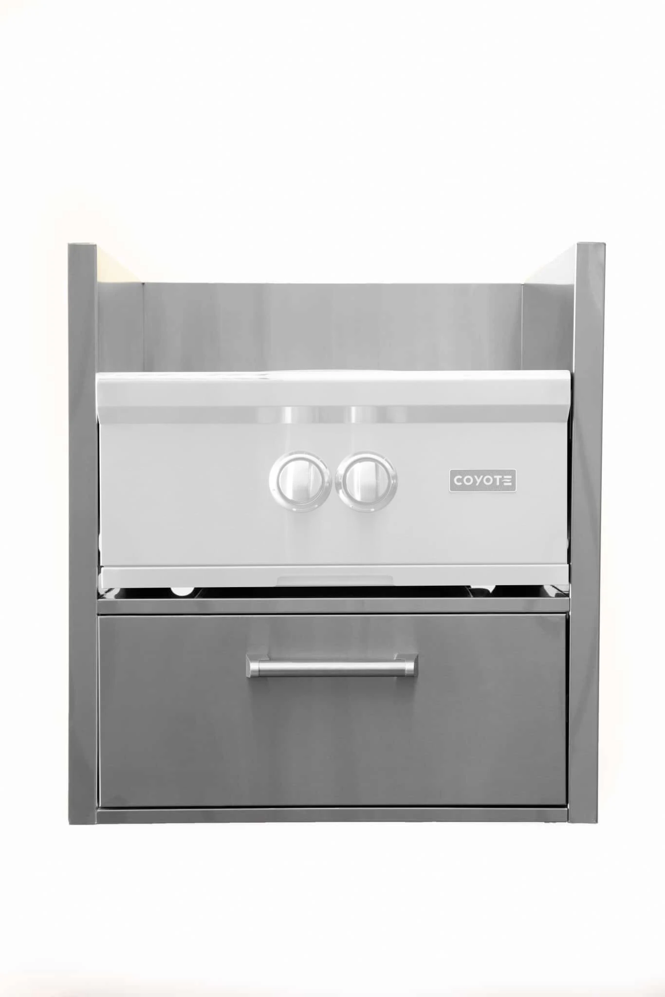 Coyote Asado Power Burner Insulating Jacket w/ Drawer (C1SLV) provides a premium insulating jacket for your Coyote grill. This insulating jacket features stainless steel construction for added durability, while its design allows for safe installation into a combustible grill island.