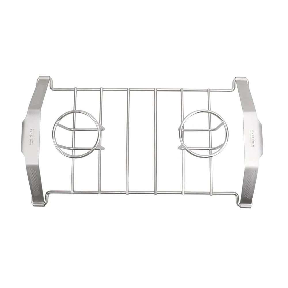 Everdure HBCRPDQ Quantum Stainless Steel Chicken Roasting Rack provides a premium chicken roasting rack for use with your outdoor grill. Featuring heavy-duty construction, this accessory has been built to last. Get the most out of your grilling with help from Everdure.