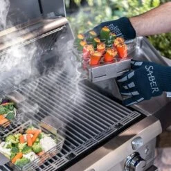 Saber A00AA6118 High-Temp Grill Gloves provides a premium accessory for use with your grill. Keep your hands protected from the heat of your grill with these high-temperature gloves. With their Aramid cotton construction, these gloves offer superior protection, while non-slip silicone areas offer added assistance when gripping hot items.