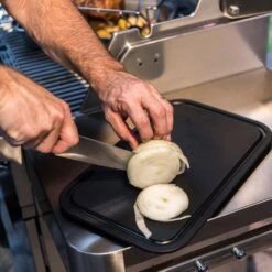 - Convenient – High density polyethylene cutting board with a groove to collect meat juices for making sauce and gravy; Heavy-duty riveted handles for easy lifting and carrying