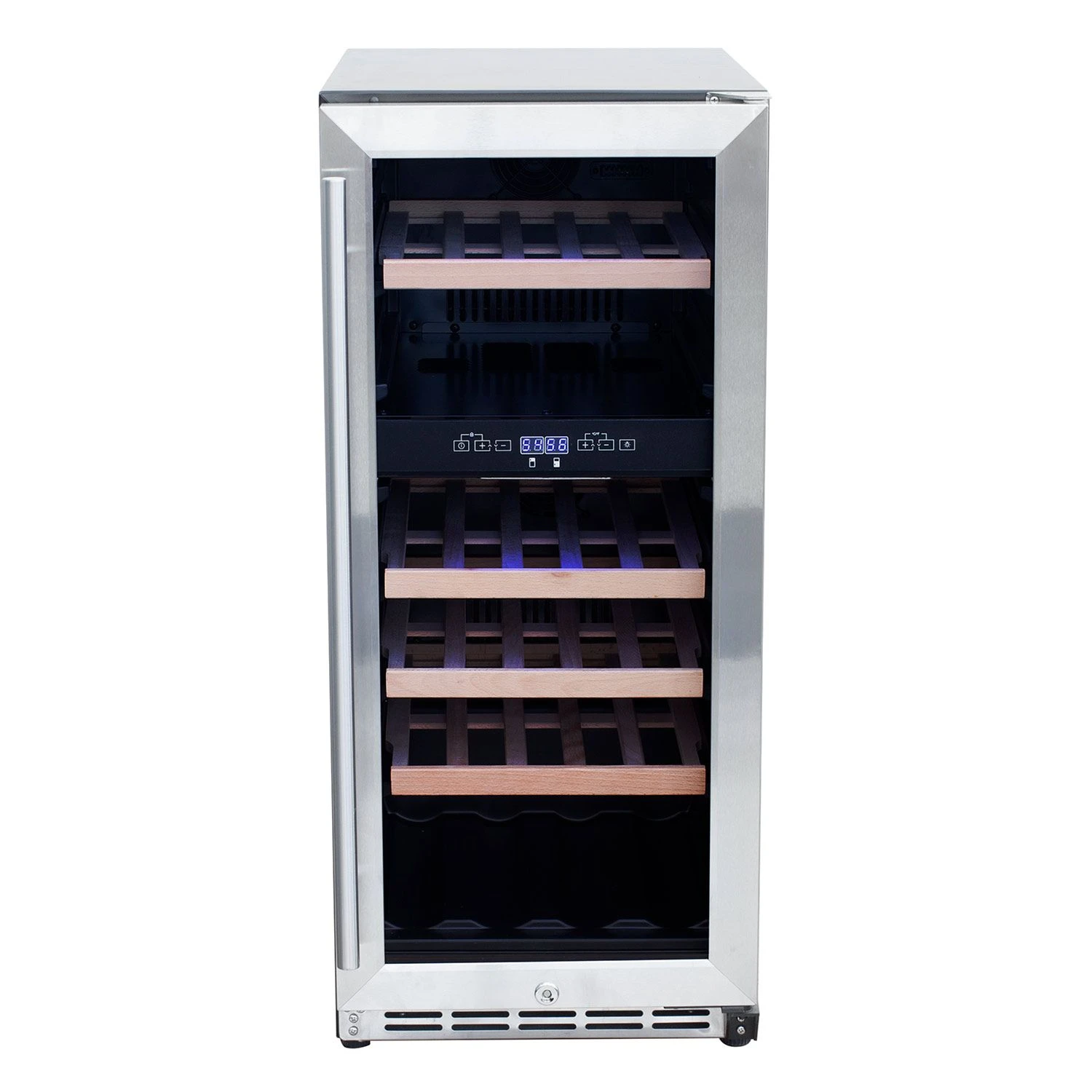 Summerset SSRFR-15WD 15-Inch Outdoor Rated Dual Zone Wine Cooler offers a top notch outdoor refrigeration option for your outdoor kitchen setup. Durable and weather-resistant 304 stainless steel means it will stand up to the elements, and smart interior with wooden rack shelves give you the space and organization you need with two separately controlled zones for different wine types. A built-in digital thermostat gives you the precise control you need for an ideal experience, and the cooling system is designed to dampen vibrations in the interior. It also features a smart integrated lock for reliable security.