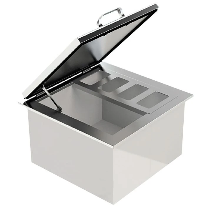 The Outdoor GreatRoom Company 25ICEBIN Drop In Ice Bin Cooler with Condiment Tray, 25-Inch provide a high quality storage option that will help complete your ultimate outdoor kitchen. The heavy duty stainless steel construction offers long term durability while the polished stainless steel look will integrate with any outdoor kitchen decor. The drop-in cooler allows you to store plenty of ice, food and beverages for added convenience and utility. Create your own outdoor kitchen paradise and be sure to complete it with this storage solution from The Outdoor GreatRoom.